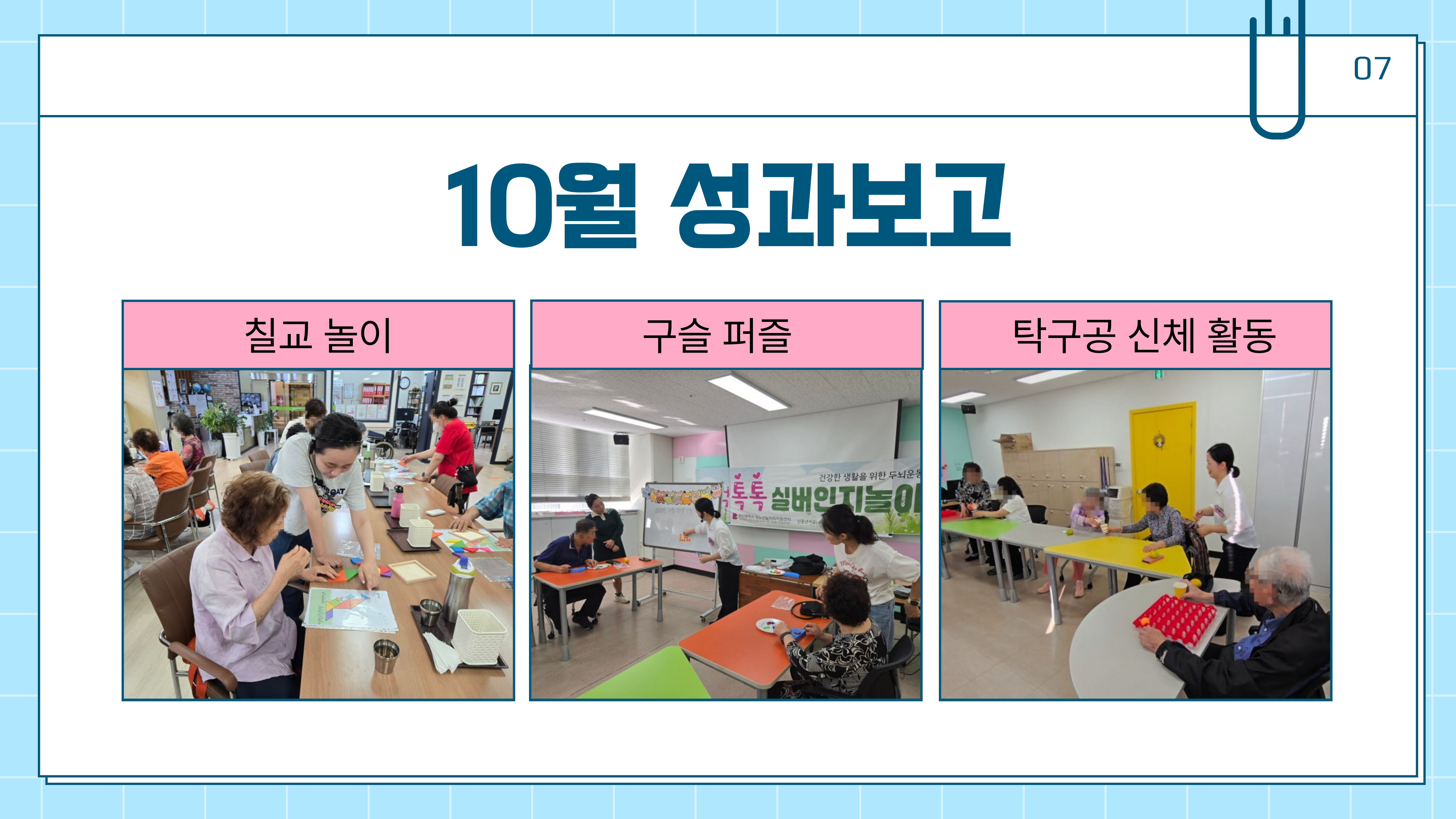 구슬퍼즐 인지활동과 탁구공을 활용한 신체활동