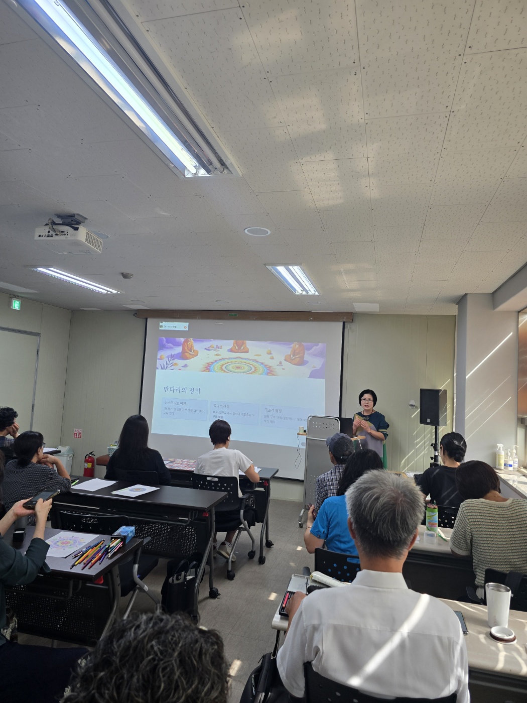 주제: 만다라의 이해, 감정카드활용 &ampnbsp &ampnbsp &ampnbsp &ampnbsp &ampnbsp 감정인식과 자기표현을 통한 커뮤니케이션 돕기. 이번수업에서는 만다라그리기와 이론을 바탕으로 감정카드를 선택하여 활용할수있는 기법을 배우며,&ampnbsp 집단속에서 서로의 감정을 이해하고 소통할수있는 활동을 진행하였습니다. 소통프로그램을 통해 집단원들이 즐겁게 참여하면서 자연스럽게 관계를 형성하고&ampnbsp 서로에 대한 이해와 유대감을 높일수있는 시간이었습니다.