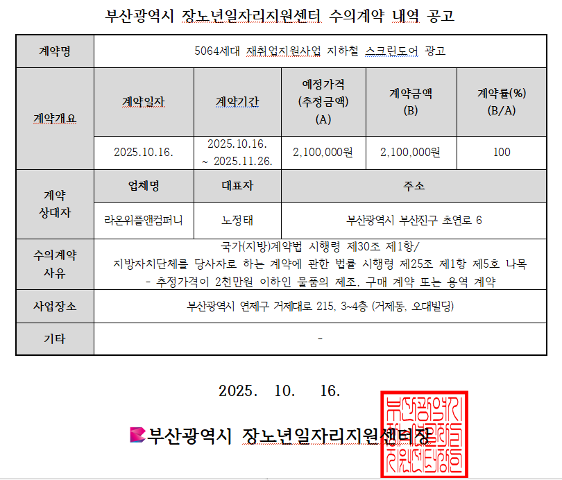 - 모집중 [남구] 감만현대1차 아파트 외곽 미화원2025.11.04