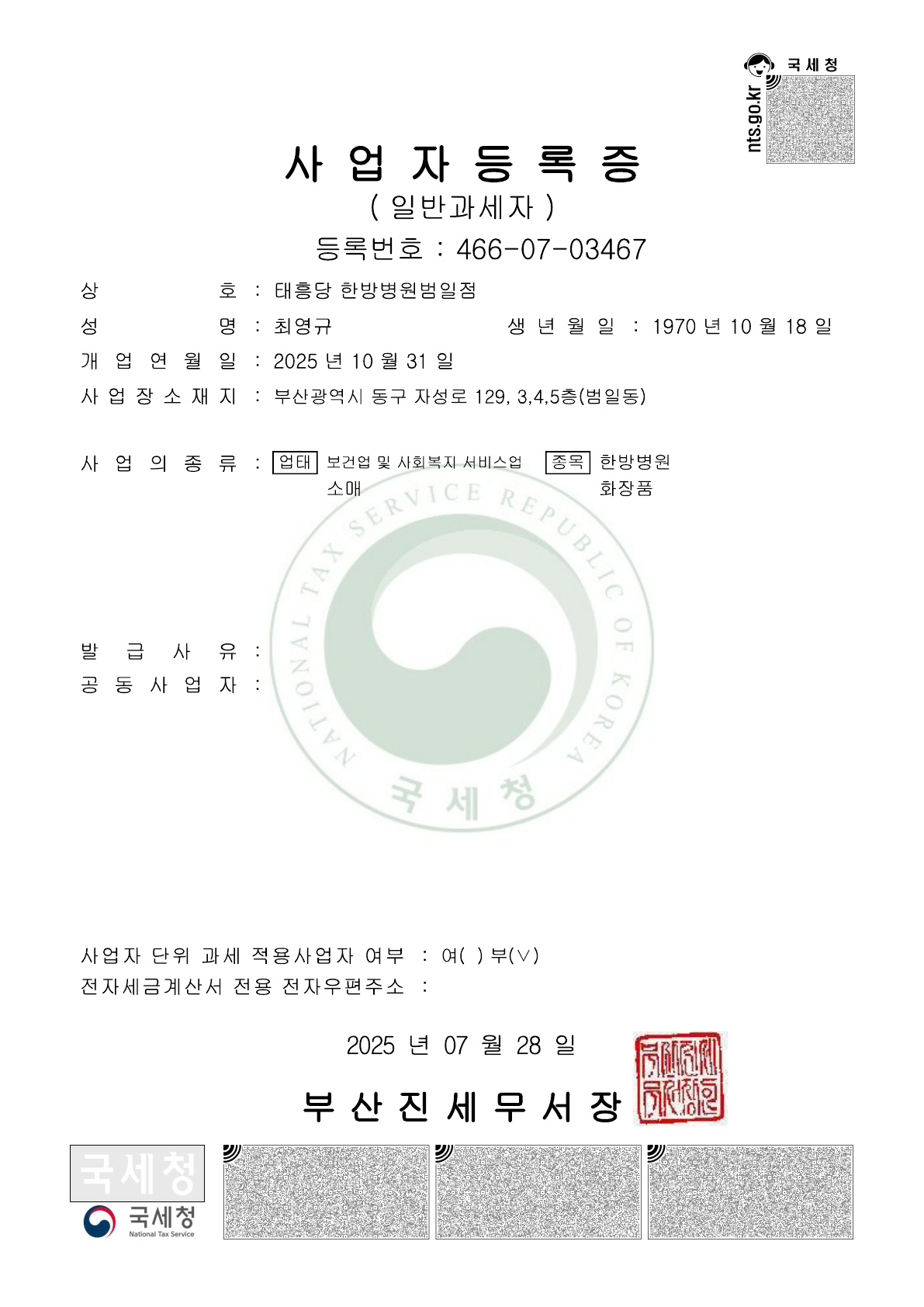 -근무장소: 동구 자성로 129 효산빌딩 3~5층 태흥당한방병원 범일점