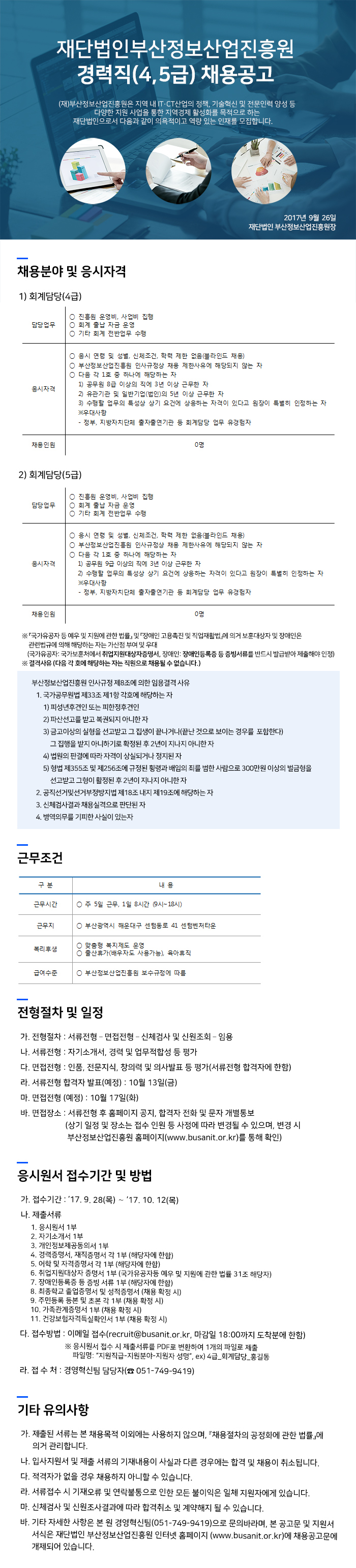 다. 접수방법 : 이메일접수(recruit@busanit.or.kr, 마감일 18:00까지 도착분에 한함)
