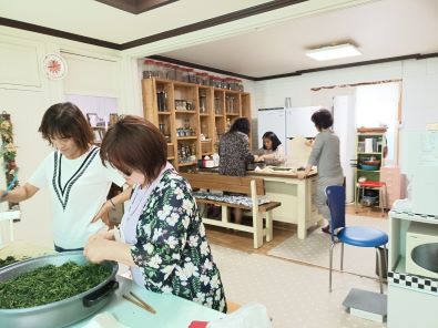 부푼 마음으로 참석한 선생님들과 봄의 향이상큼한 생강나무를 씻고 자르며. 향에 취하고 이야기에 취하고