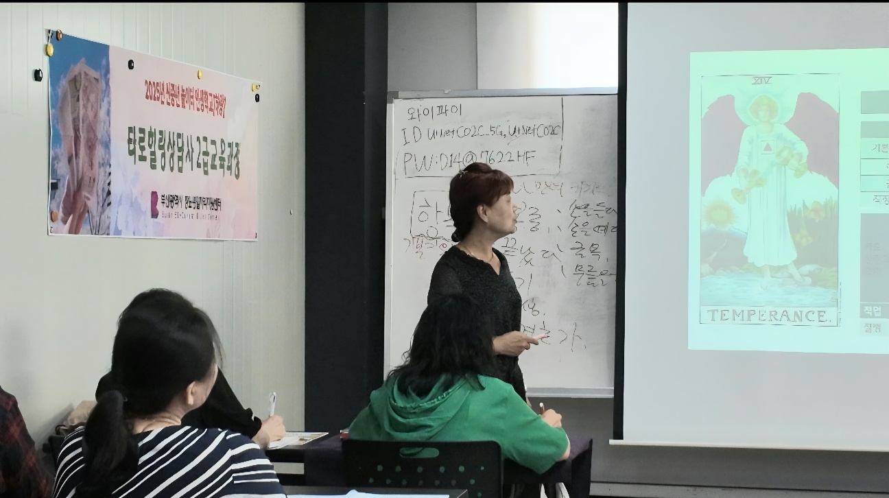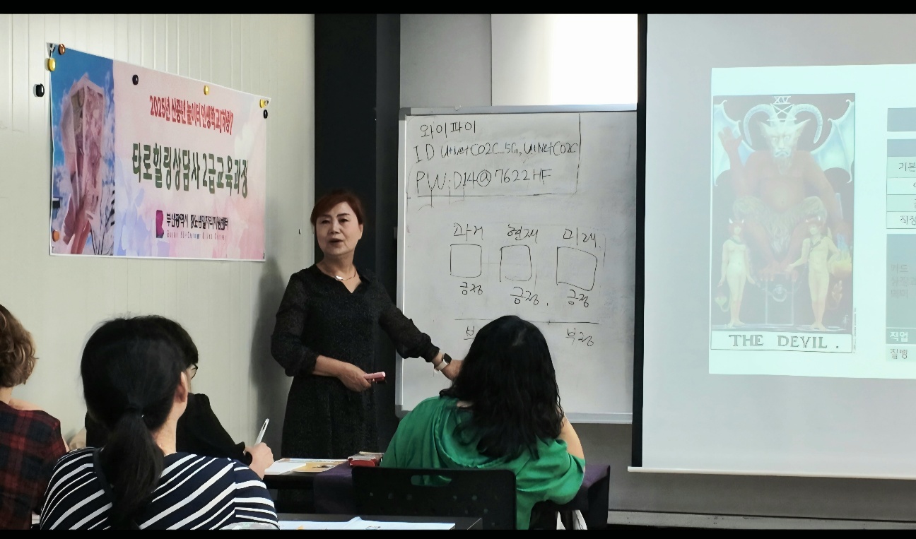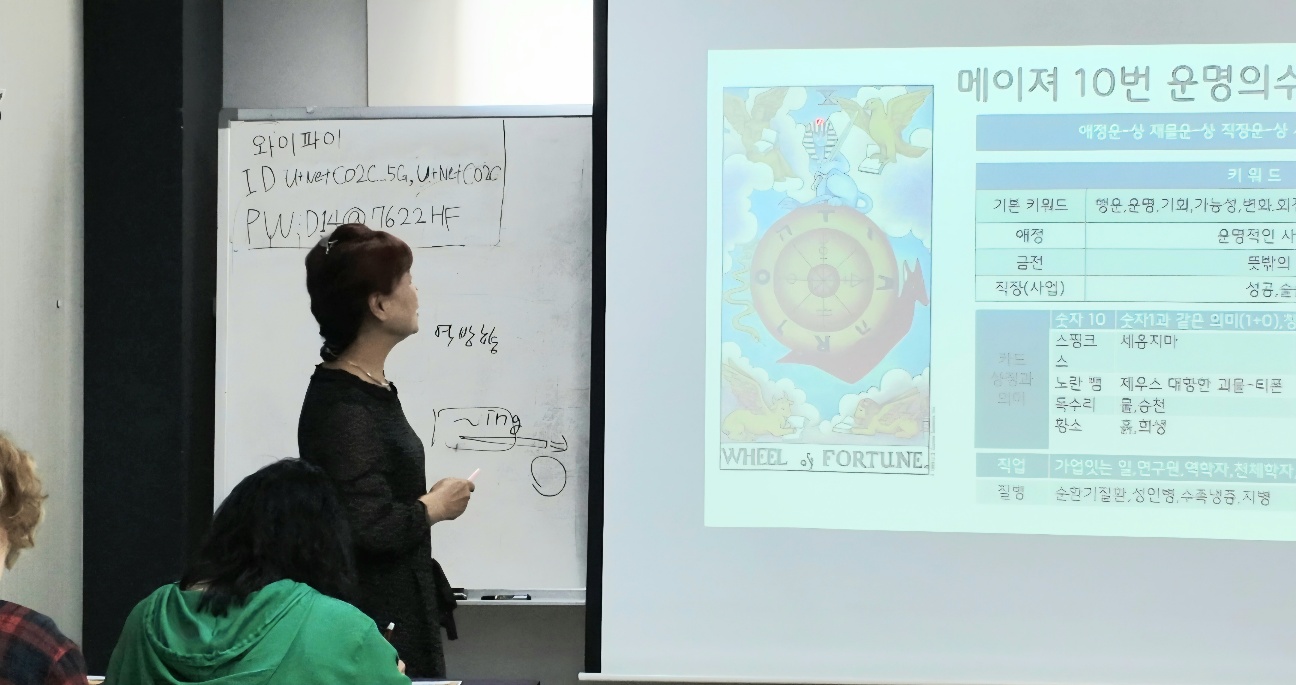 안녕하세요  타로강사 김남정입니당^^ 시간이 정말 빨리 흘러가네요^^ 벌써 타로공부를 시작한지 4주째가 되었구요 이제 메이져 22장을 마무리 했습니다^^ 제가 보통 30분전에 타로교육 하러 오면 그전에 벌써 최소 3분이상 출석을 하신 선생님들이 계십니다^^ 왜 이렇게 일찍 오시냐고 여쭈어 보면 타로 공부할 생각에 일찍온다고 하시네요 ㅋ 저도 다른 공부를 계속 하고 있어서 그 마음을 안답니다  설레이는 마음으로 일주일을 기다리고 그 기다린 마음으로 일찍 올수밖에 없지요  일주일동안 안부도 묻고 공부하면서 몰랐던 질문도 하고 정말 유익한 시간이 된답니다  이제 벌써 메이져카드를 마치고 마이너 카드로 접어들었습니다  선생님들의 공부하는 분량도 많아지는데도 선생님들이 너무 열심히 잘 따라주셔서 너무 행복합니다 타로카드는 내가 공부한 만큼 리딩이 된답니다  내가 공부를 열심히 해서 멋진 상담다사가 되면 타로 상담을 더 잘 해 줄수있답니다  우리 선생님들은 다 멋진 타로힐링상담사가 되실거라고 믿어 의심치 않습니다 너무 고맙습니다 또 뵙겠습니다^^ |