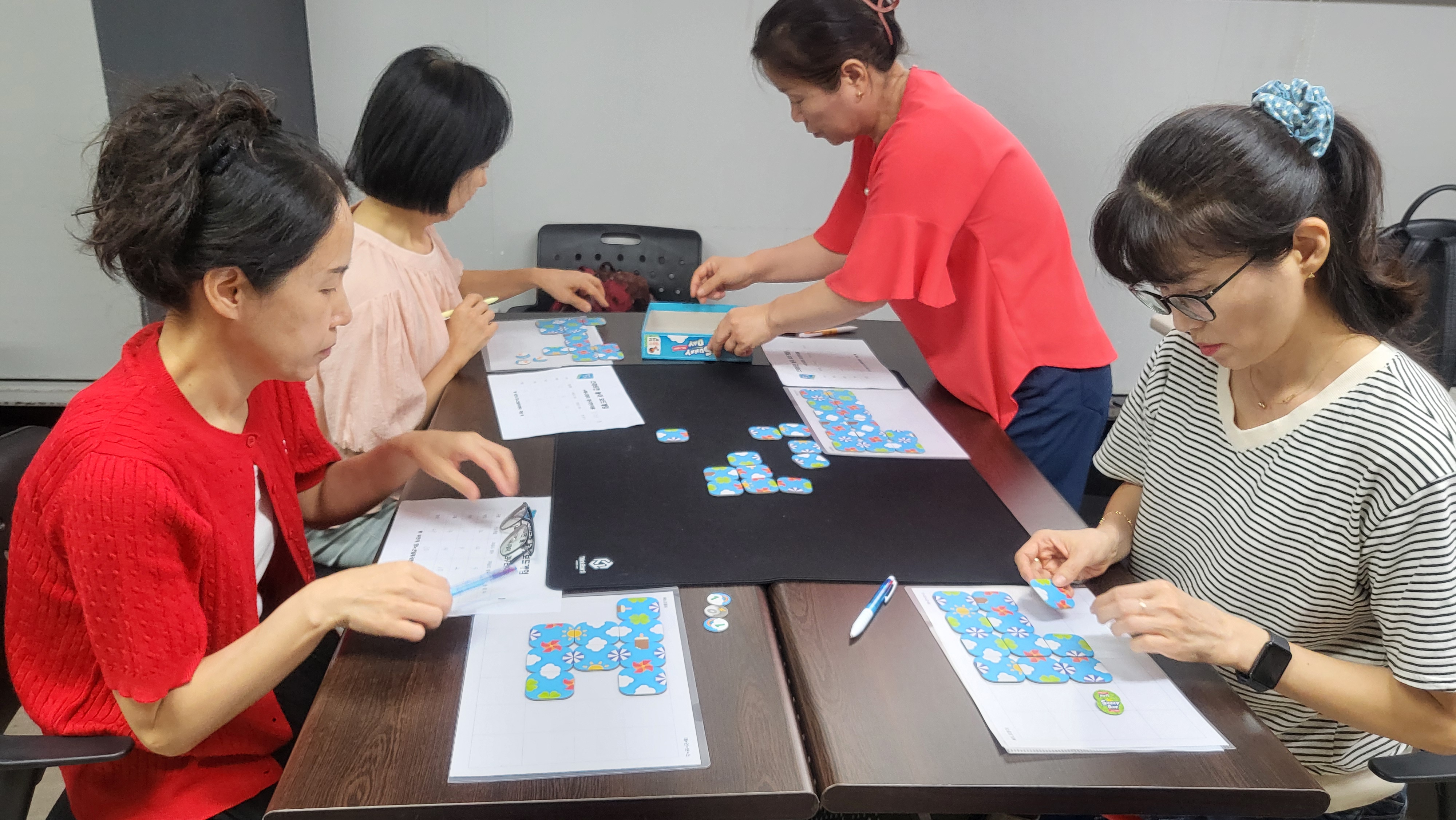오늘은 스마트한 놀이 보드게임 2차시 – 써니데이 보드게임으로 신중하고 전략적인 시간이 펼쳐졌습니다! “그냥 노는 게 아니라 머리까지 쓰는 재미가 있네요~”라는 말처럼 타일 획득으로 끝나지 않고, 모은 타일로 또 점수 획득을 위한 요리조리 타일 돌리기! 한 판, 두 판 거듭될수록 열기도 더 뜨거워지고, 다음 주 수업은 또 어떤 즐거움이 기다릴까요?! 기대하세요, 스마트한 놀이 보드게임의 다양한 게임은 계속됩니다! |