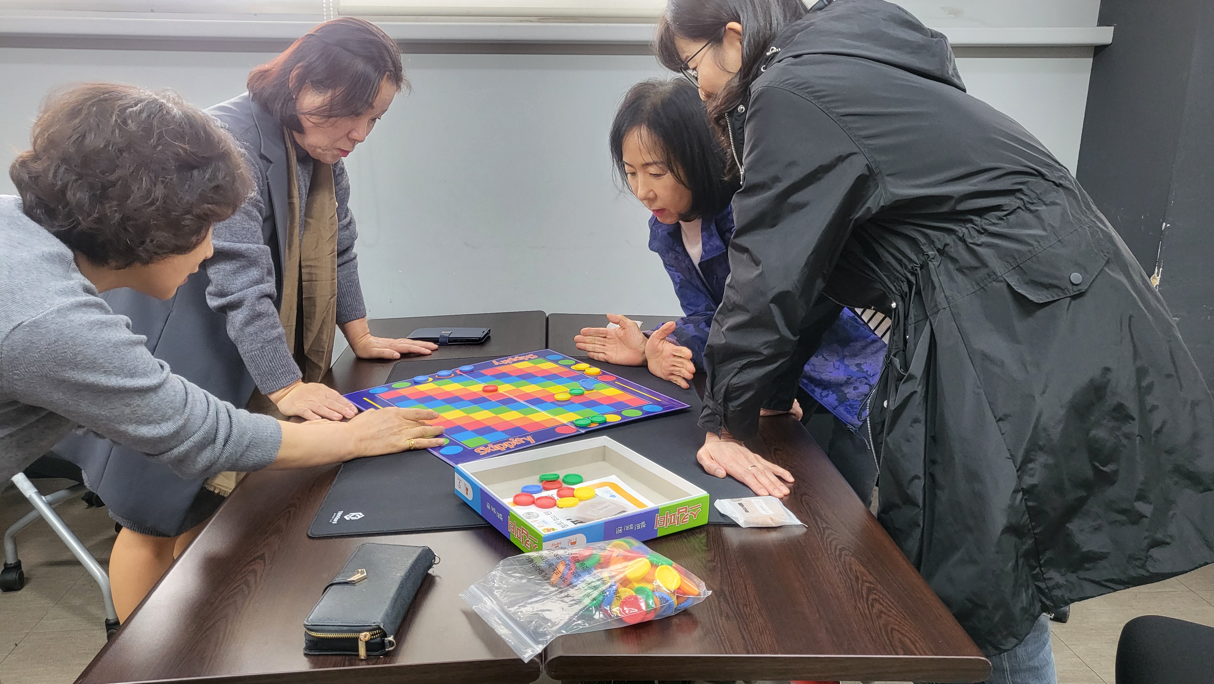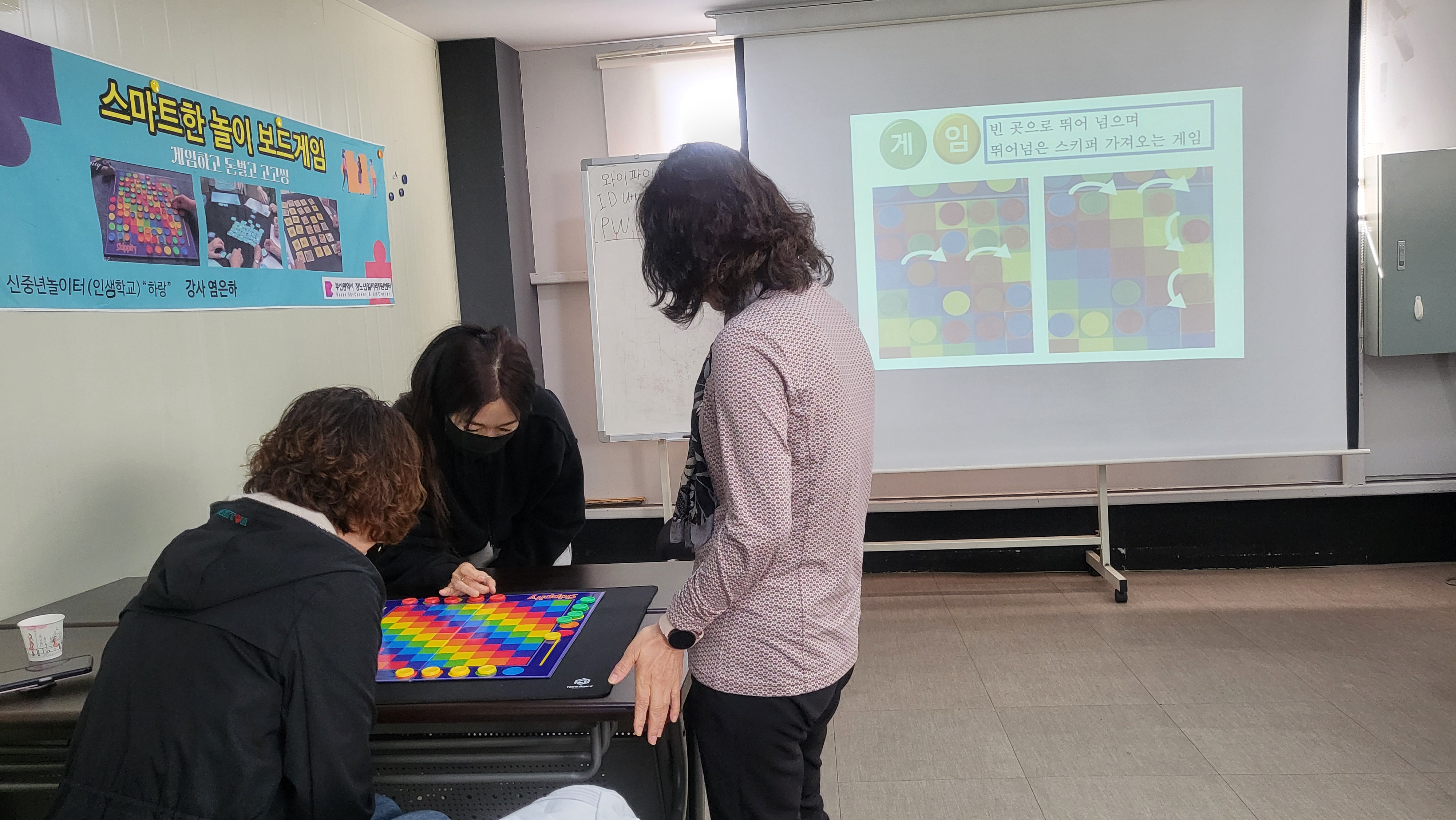 스마트한 놀이 보드게임 7차시는 점프! 점프! 전략 두뇌게임, 스킵피티 보드게임 수업! 그야말로 집중력 폭발 현장이었어요. 스킵피티는  한 칸, 두 칸 징검다리로 스키퍼를 점프하며 스키퍼를 획득하는 전략형 보드게임! 하지만 단순히 점프하는 게임이 아니죠— 누구의 길을 막을지, 어떤 스키퍼를 남길지 한 수 앞을 내다보는 두뇌싸움이 펼쳐졌답니다. “아차! 저 징검다리도 있었는데...~” “오, 이번엔 완벽한 점프예요! 스키퍼 4개 획득!” 순간의 판단이 승부를 가르는 만큼 모두의 눈은 징검다리를 찾아 반짝였습니다. 게임이 끝날 때쯤엔 승자보다 더 환하게 웃는 표정들로 교실이 따뜻해졌어요. 매시간 다양한 교구로 재미를 더하는 하랑의 보드게임 수업은 놀이 속에서 배우고, 웃음 속에서 성장하는 시간이라 두 시간을 아쉬워하며 다음 시간을 기다리신다 합니다.