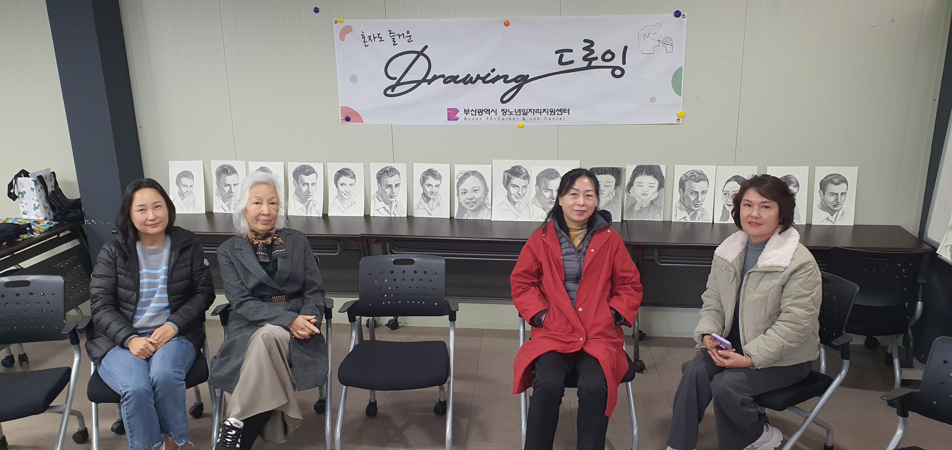 인물드로잉을 마무리하고 품평회를 통해 다른사람의 그림을 감상하고 배울수 있다